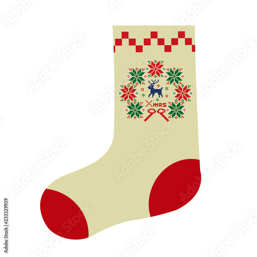 クリスマスのイメージの靴下 トナカイとxmas クリスマスプレゼント ノルディック柄のイラスト素材